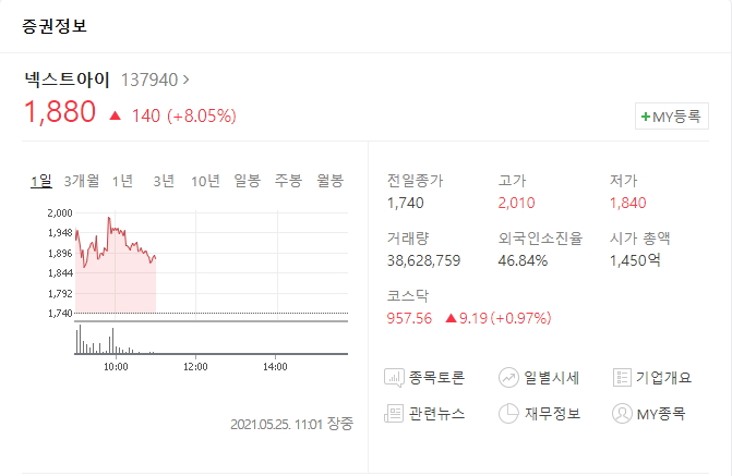 - 넥스트아이는 이준석 의원의 아버지인 이모씨가 2019년까지 감사위원으로 재직했다는 사실이 세간에 알려지면서 이준석 관련주 분류되어 주목을 받고 있습니다.