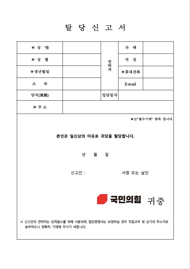 1. 국민의힘 탈당 신청서 양식 및 작성방법