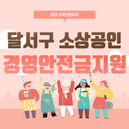 대구광역시 달서구 소상공인 경영안전금지원 시작됐습니다. 달서구 관내 저신용 소상공인을 대상으로 한 이번 경영안전금지원 사업은 업체당 500만원까지 대출을 받을 수 있도록 한건데요 신청 방법과 대상에 대해서 자세히 알아보겠습니다.