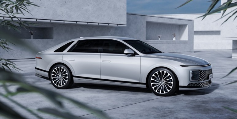측면부에서 봤을때 헤드램프에서 리어 램프까지 일직선으로 이어지는 램프 라인은 프레임리스 도어와 오토 플러시 도어 핸들과 함께 아주 단정하면서도 넓은 볼륨감으로 대형 세단의 위치를 확실히 보여주고 있는데요