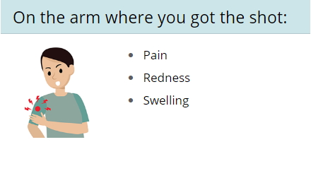 COVID-19 예방 접종은 COVID-19에 걸리지 않도록 보호하는 데 도움이 됩니다. 신체가 보호 기능을 구축하고 항체를 생성하는 정상적인 징후인 일부 부작용이 있을 수 있습니다. 이러한 부작용은 일상 활동을 수행하는 능력에 영향을 줄 수 있지만 며칠 안에 사라집니다. 또한 일부 접종자는 백신 부작용이 없습니다. 일반적인 백신 부작용은 아래와 같습니다.