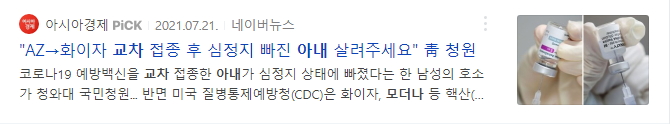 - 뇌 정맥, 다리 쪽에 혈전이 발생한 것으로 100만명 당 1.25건 수준으로 가능성은 낮다고 알려져 있습니다.