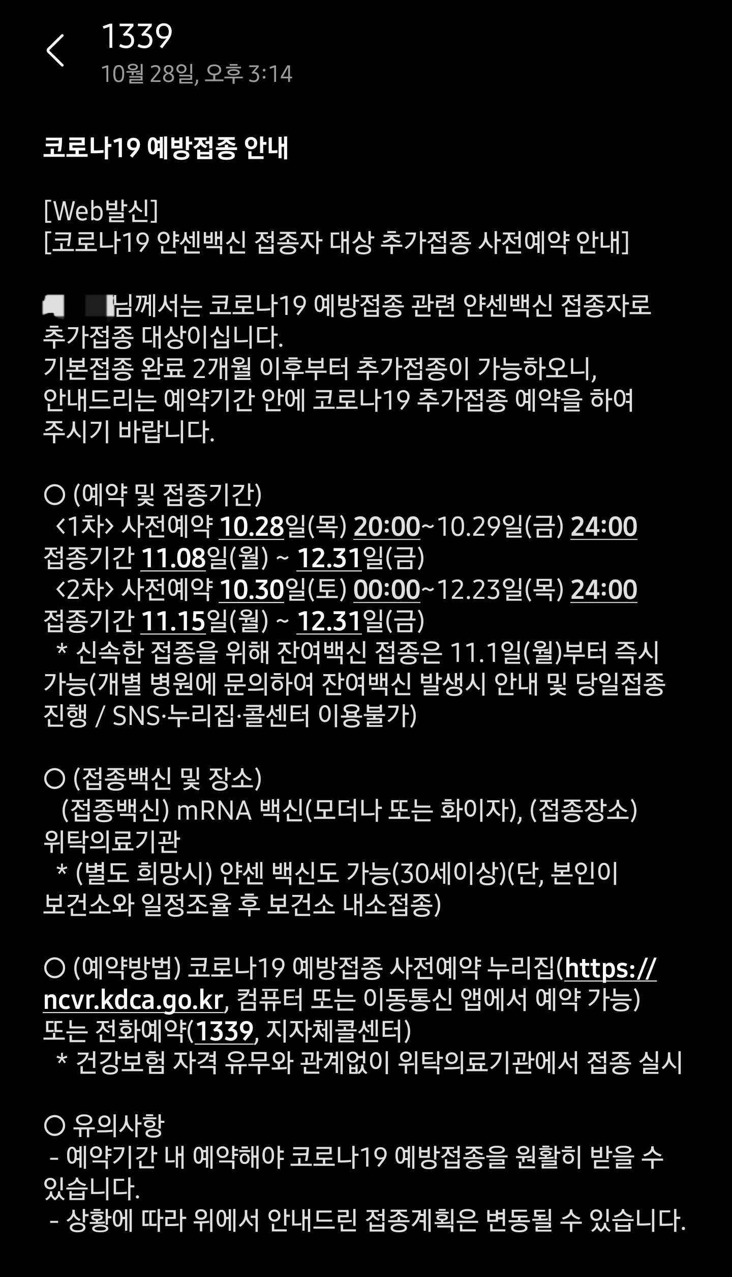 | 기저질환자 | 11.01일(월) 20:00~ | 11.15일~ | |