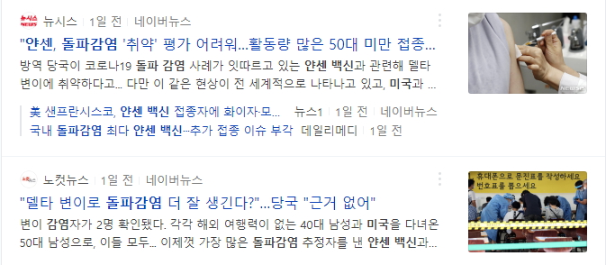 이미 미국에서는 얀센 백신 접종자의 돌파감염 사례가 많이 나오면서 추가 접종(부스터 샷)을 고려하고 있다는 소식이 들려오고 있습니다. 다른 방식의 모 더 나나 화이자를 교차접종할지 아니면 얀센 백신을 추가 접종할지에 대한 부분도 연구와 논의가 계속되고 있는데요
