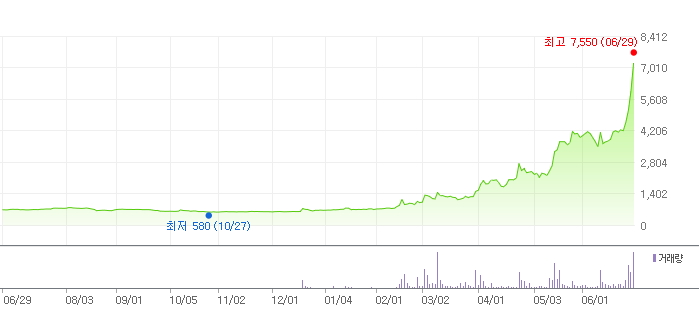 차트를 보면 올해 2월부터 몇차례 조정을 거치면서도 꾸준히 우상향 흐름이 나오고 있습니다. 연일 신고가를 달성하고 있는 차트를 보이고 있는데요 강한 상승모멘텀을 보여주고 있습니다. 추가상승 여력이 높아 보입니다.