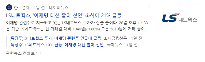1.이재명 관련주 LS네트웍스