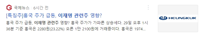 - 흥국의 회장이 안동 향우회 회장이면서 이재명과 동향 선배사이 라는 이유로 관련주로 분류되었습니다.