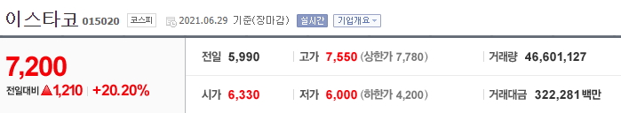 이재명 관련주 이스타코 주식차트