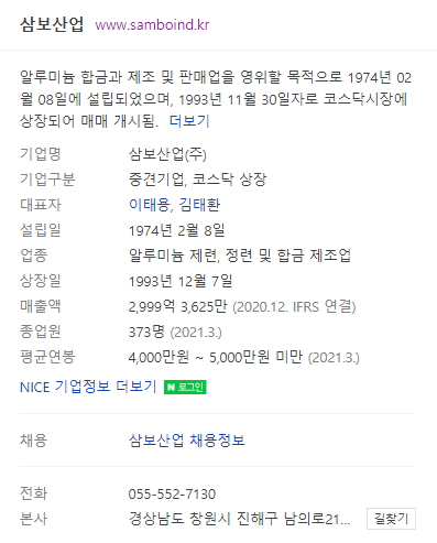 - 삼보산업은 알루미늄 합금과 제조 및 판매사업을 하고 있습니다.
