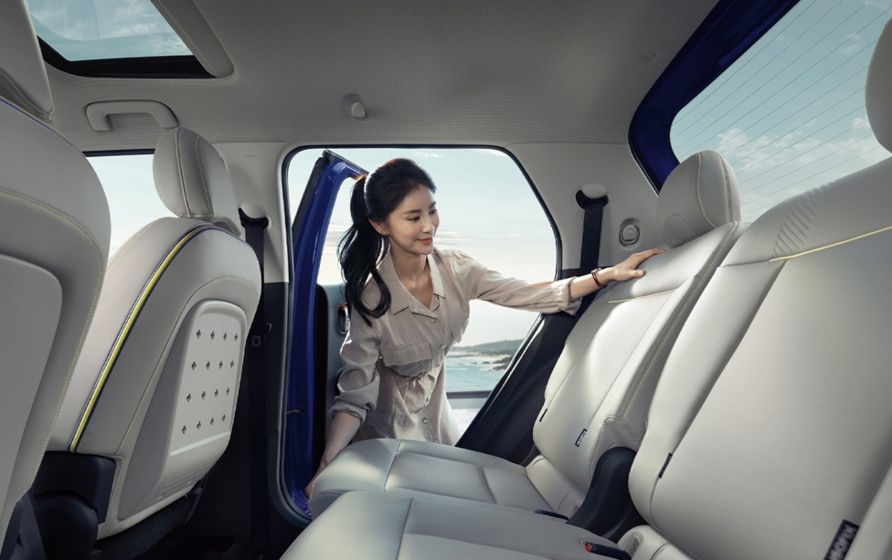 현대 캐스퍼 실내 디자인 중 눈에 가장 먼저 들어온것은 시트였습니다. 1열 시트 바닥만 블루컬러를 적용한게 인상 깊었는데요 흰색이나 밝은색 시트의 경우 오염에 취약하고 특히 가장먼저 들었던 생각은 워싱처리가 안된 생지 데님 청바지를 입고 타면 이염이되거나 색이 뭍어나는 이염 현상이 일어나는것이었습니다. 현대 캐스퍼는 1인 경형 SUV를 표방하는 만큼 캠핑이나 아웃도어 환경에서도 어필을 하려고 한 흔적이 보입니다.