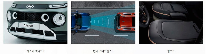 아무래도 현대 캐스퍼는 최신 경차인 만큼 경쟁 차종인 베뉴나 모닝 레이 스파크 보다 편의 사항이나 안전사양 등에서 신기술을 적용하고 경차답지 않은 편리성을 추구한 것으로 보입니다.