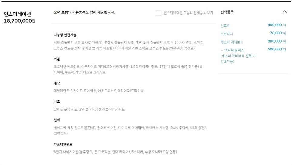 현대 캐스퍼 가격 - 인스퍼레이션