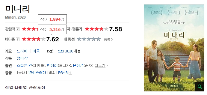 9/20일(월) SBS 08:20 방영 예정인 영화 미나리입니다. 해외에서 호평을 받은 명작이죠
