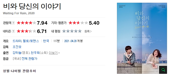 9/20(월) 오후 11:00 JTBC에서 방영 예정인 추석 특선영화 비와 당신의 이야기 입니다.