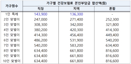 눈에 띄는 점은 1인가구의 건강보험료 특례가 있는데요 이는 혼자 사시는 고령층을 염두한 조치라고 할 수 있습니다. 그리고 맞벌이냐 외벌이냐에 따라 건강보험료 기준 금액이 다릅니다.